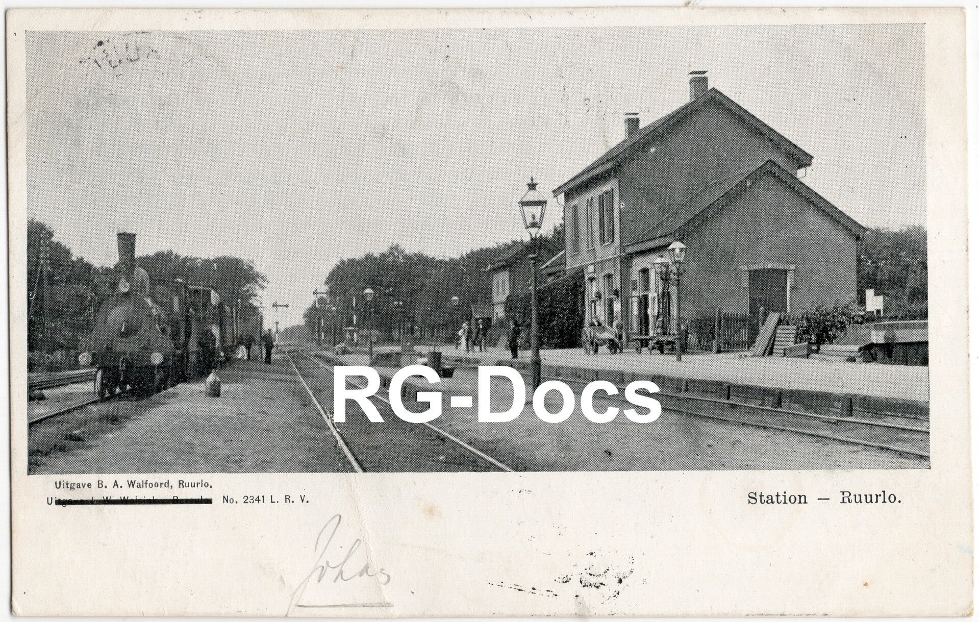 Ansichtkaart - Briefkaart Trein Station Ruurlo, stoomlocomotief, Gelderland (1908)