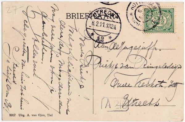 Verzonden naar: Mej. P. van Dingelbergt, Oude Gracht 29, Utrecht