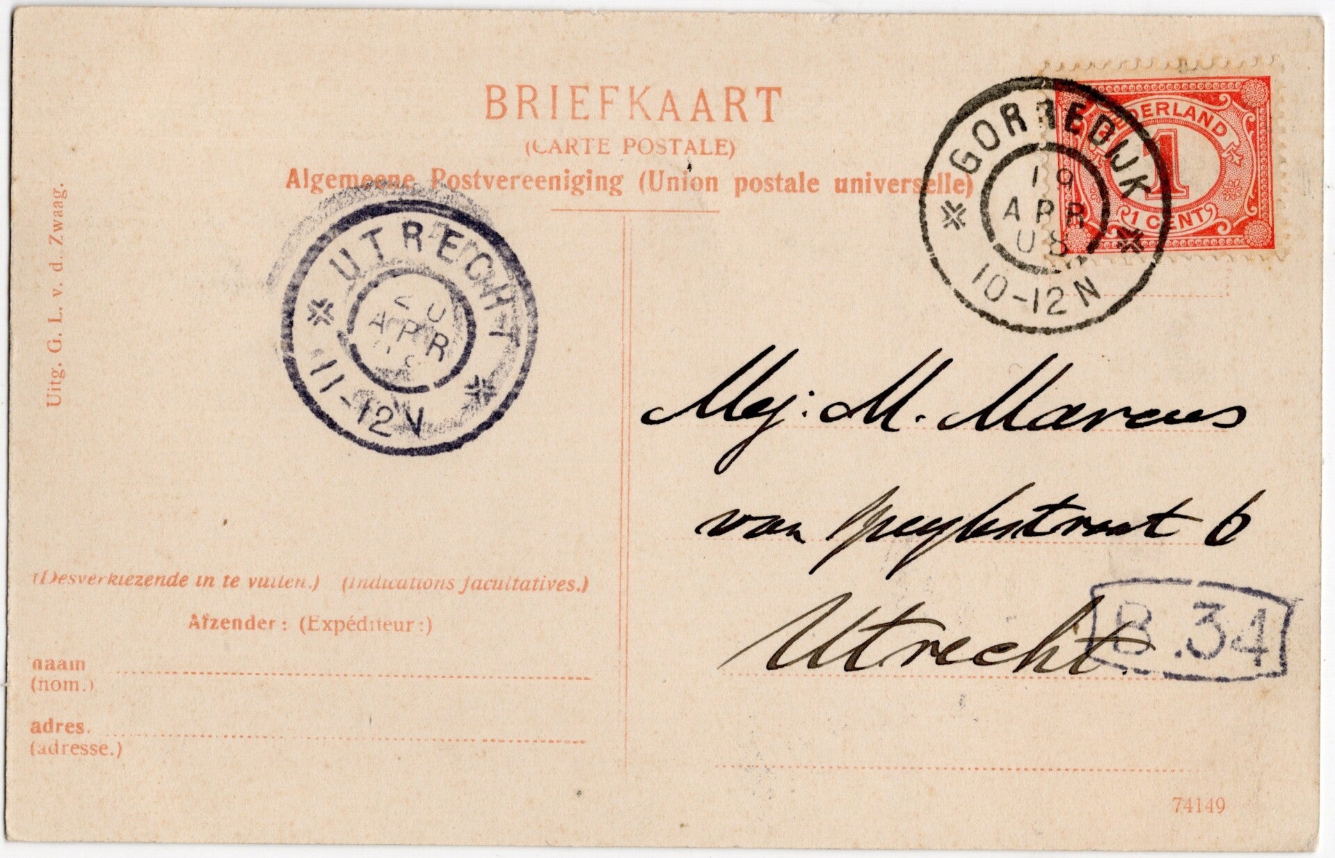 Verzonden naar: Mej. M. Marcus, van Speyckstraat 6, Utrecht