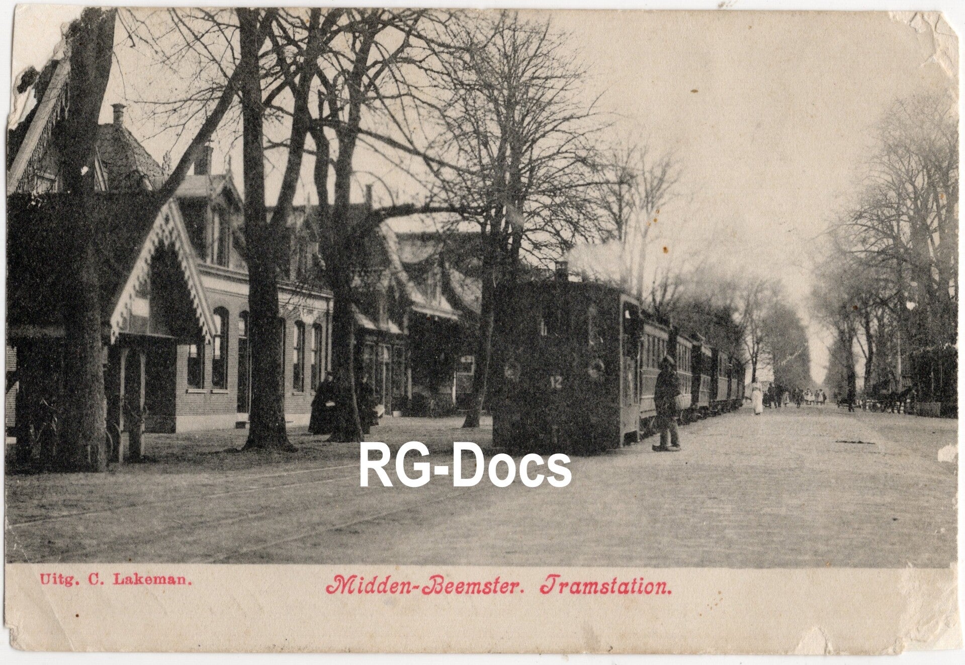 Ansichtkaart - Briefkaart Tramstation met tram Midden-Beemster, Noord-Holland (1908)